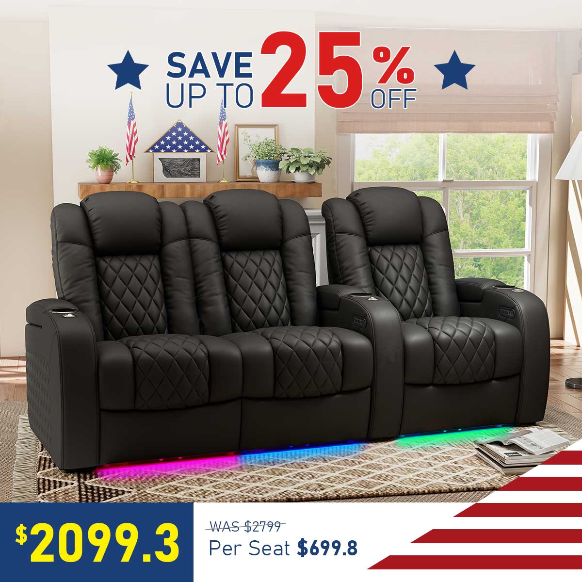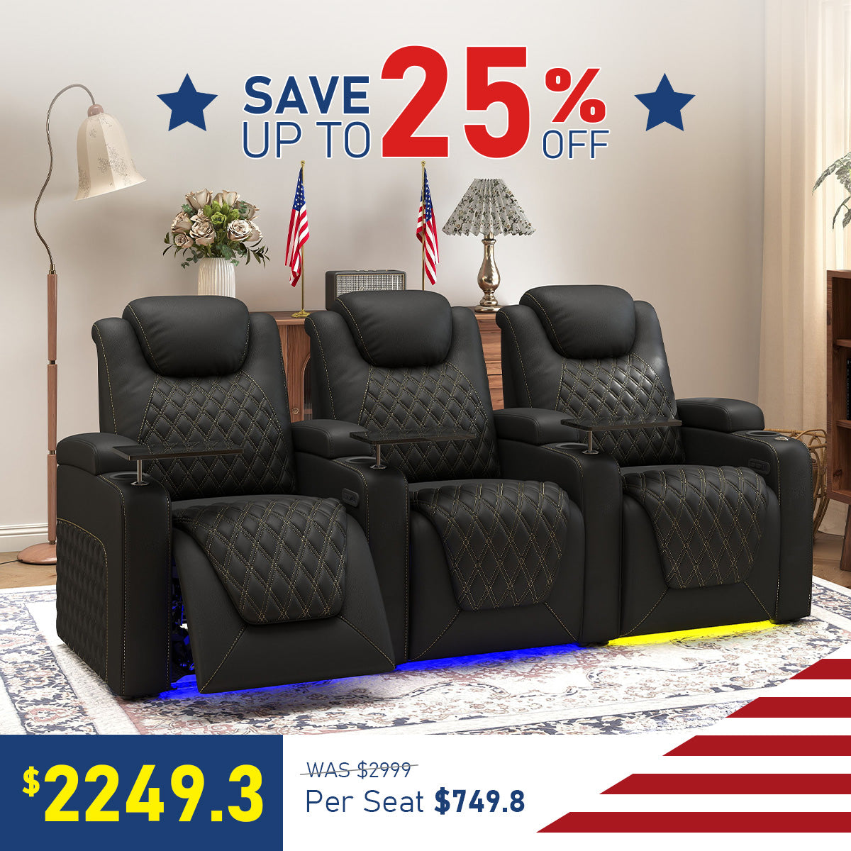 Chic Series Black Home Theater Seating 7 Colors Lighting