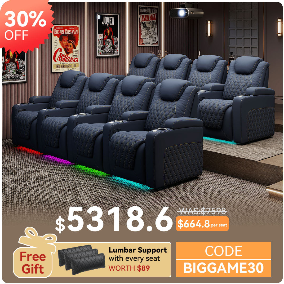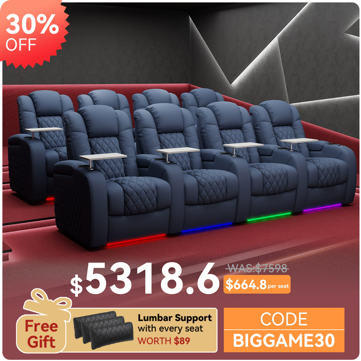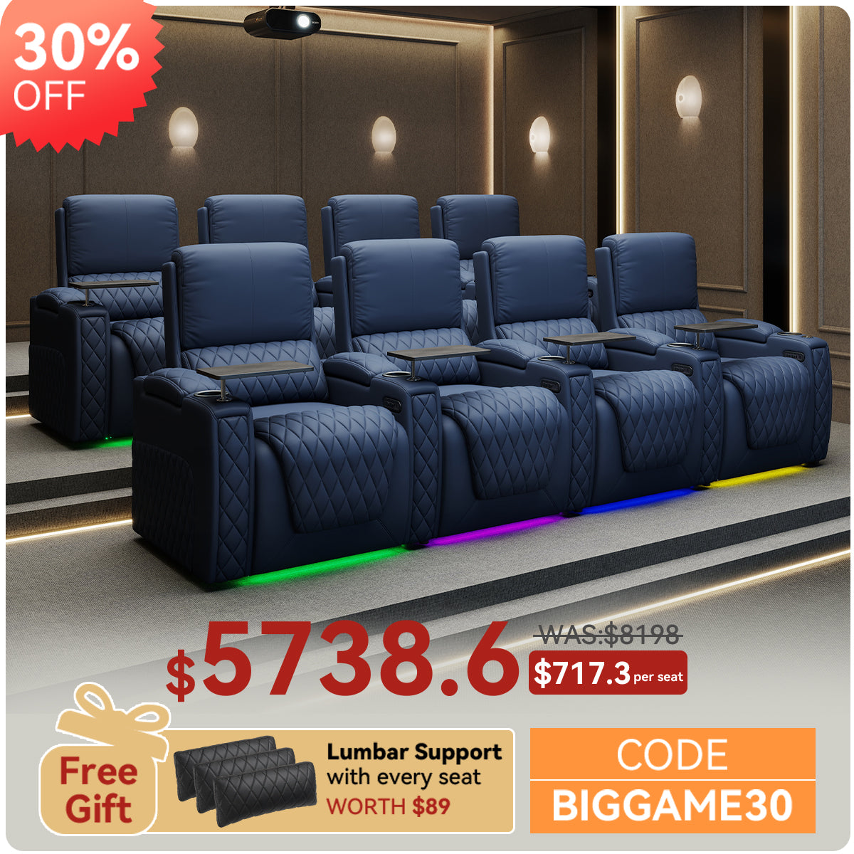Weilianda 2025 Luxury Version 2.0 Blue Home Theater Seating | Zero Gravity Recline & Ambient Lighting Sofa