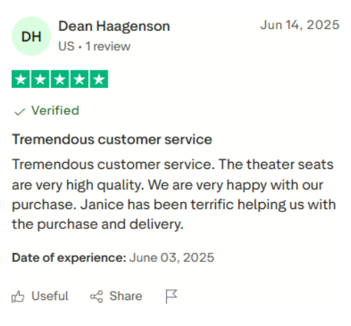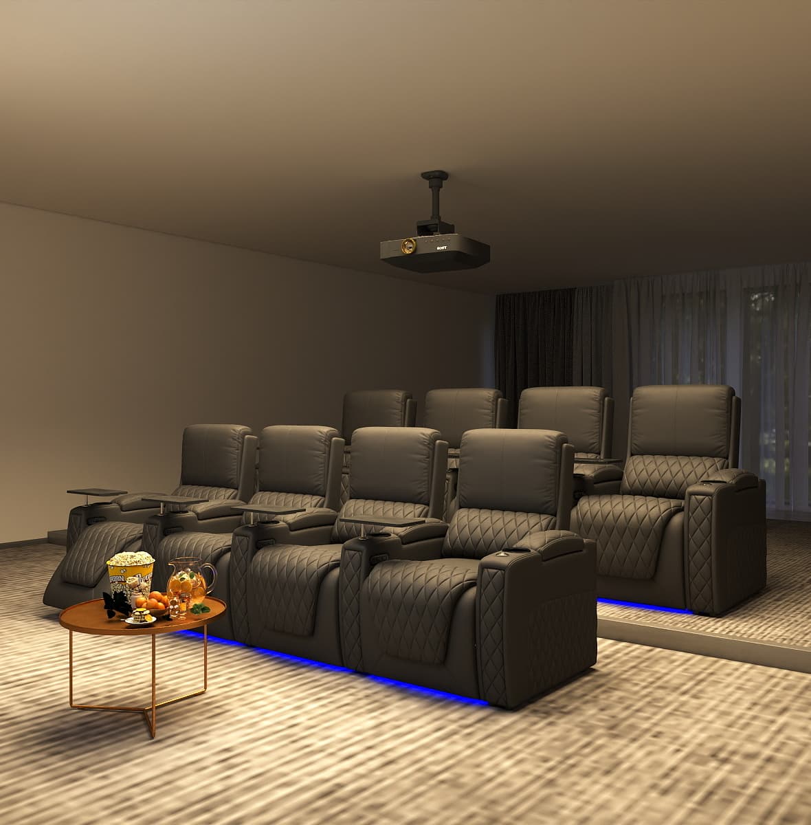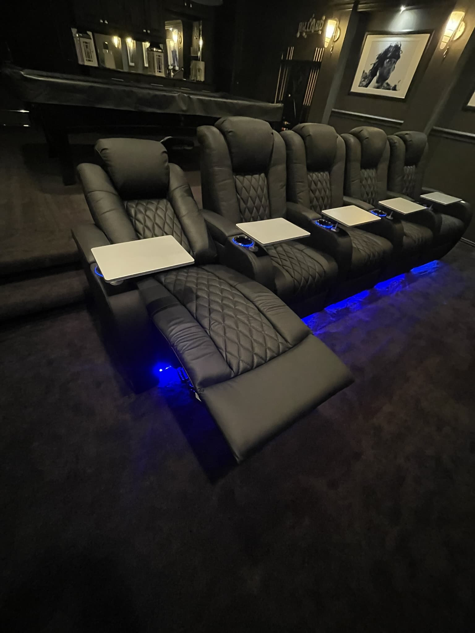 We recently purchased the Weilianda Vanguard Series Row of 4 Blue theater chairs, they are very easy to assemble, love the cup holders, the different colors of the led lights and the tray table. I highly recommend this company for your theater chairs.