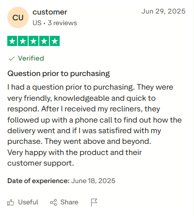 Love my new "couch" from Weilianda. Each seat individually reclines, has its own cup holder and table that can be stored in acompartment.