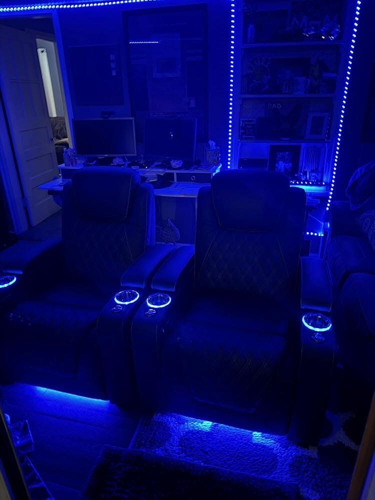 Home theater isn’t just about sound and screen—lighting matters too. Our seating with 7-color ambient lights and adjustable brightness creates the perfect cinema vibe.