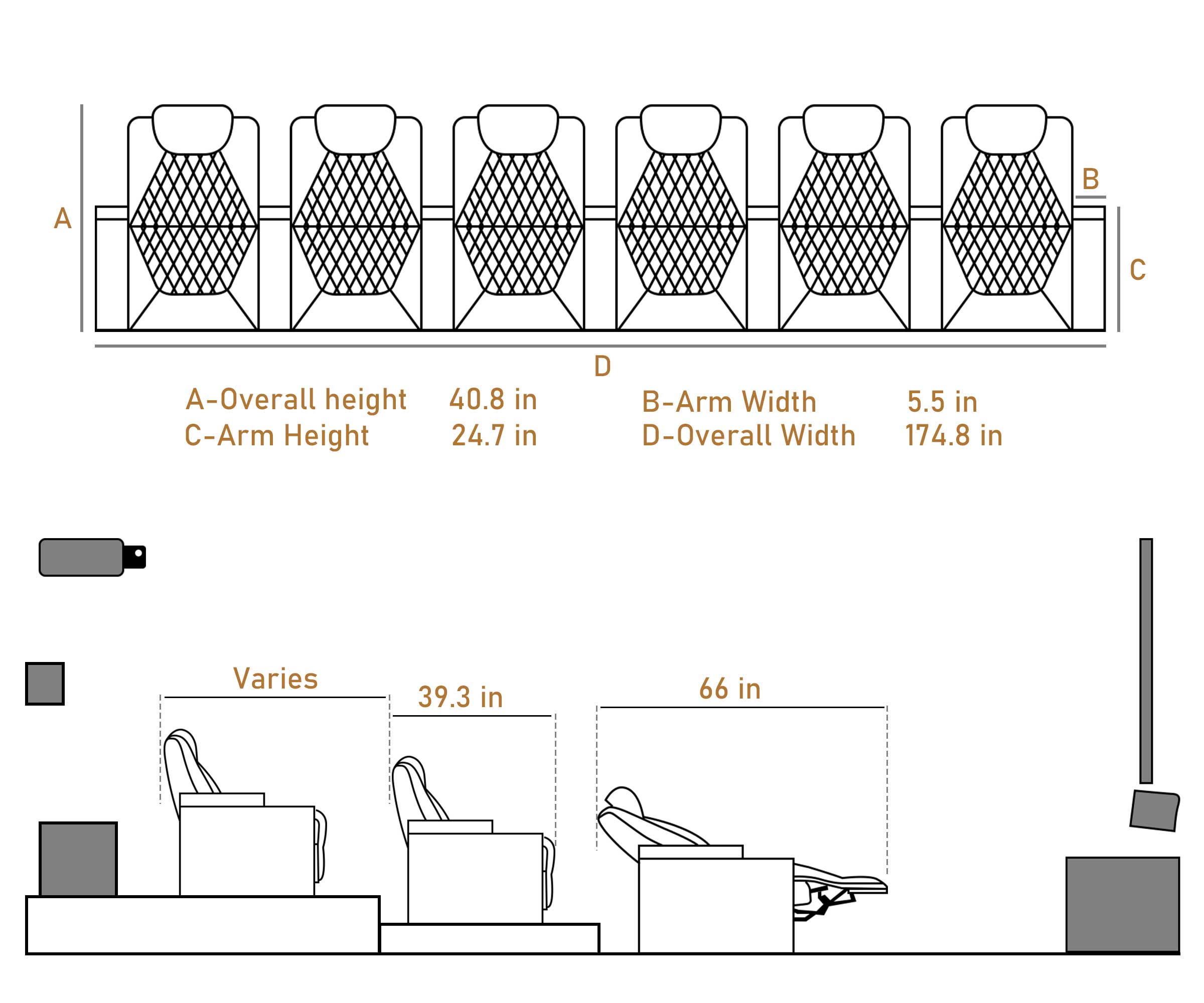 The Chic Series seats are crafted from top-grain leather, offering exceptional comfort and durability. For added durability, the rear-facing portion of the backrests—the part that typically comes into contact with walls—is made from a more abrasion-resistant polyurethane leather to help prevent scratches and scuffs.