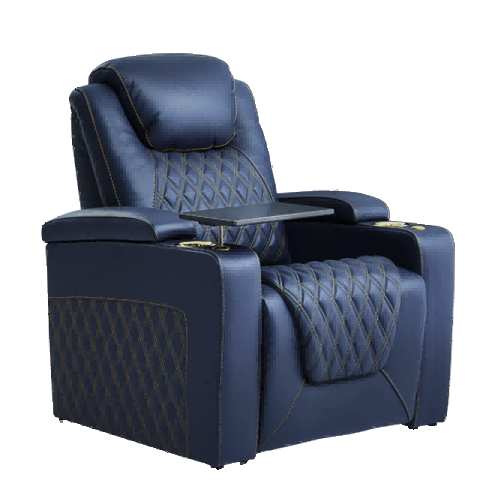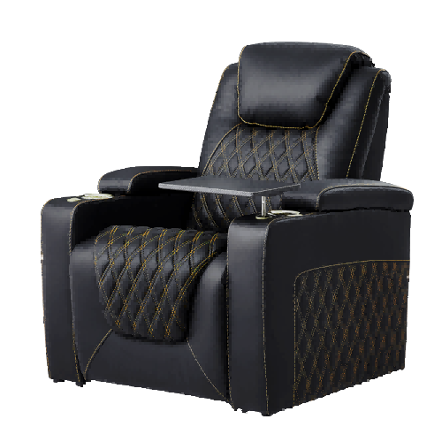 The Chic Series offers electric reclining, electric footrest, and electric headrest functions. Additionally, the seats are equipped with USB charging ports, illuminated cup holders, swivel tray tables, built-in storage, and switchable ambient lighting.
