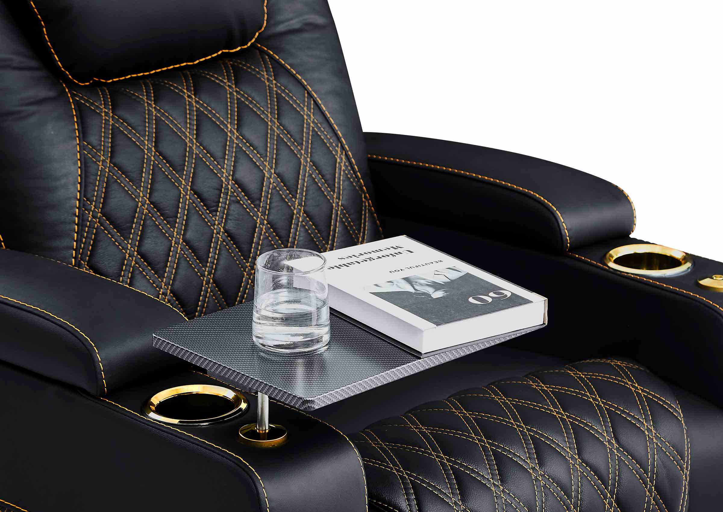 Each seat in the Chic Series comes with a tray table . Wine glass holders and tablet holders are not included but can be purchased separately to enhance your viewing experience.