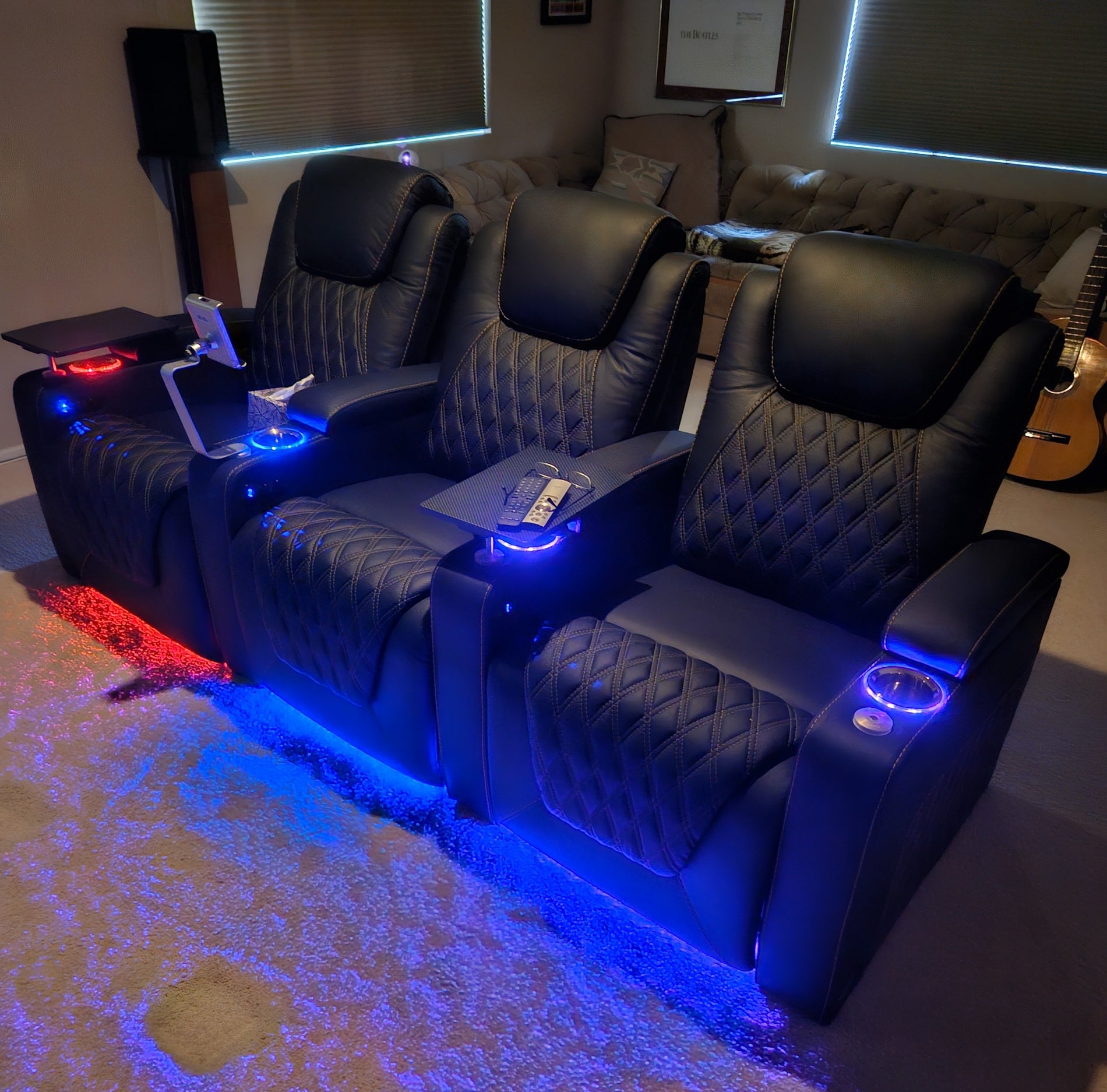 CLOSEOUT! Power Theater Seat Premium Recliner Sofa Deals | 3-Seat Chairs with Lights 7 Color for Movie Room