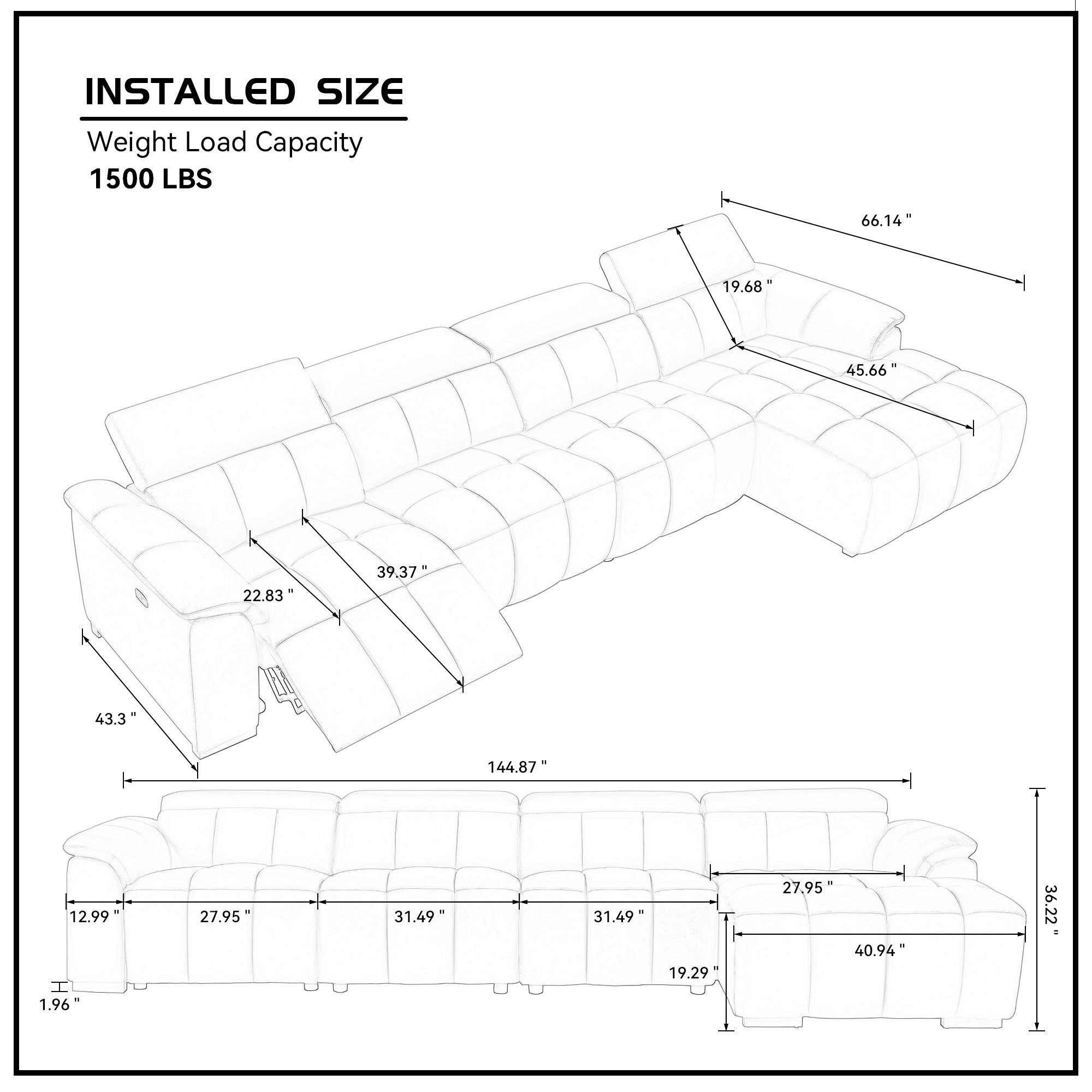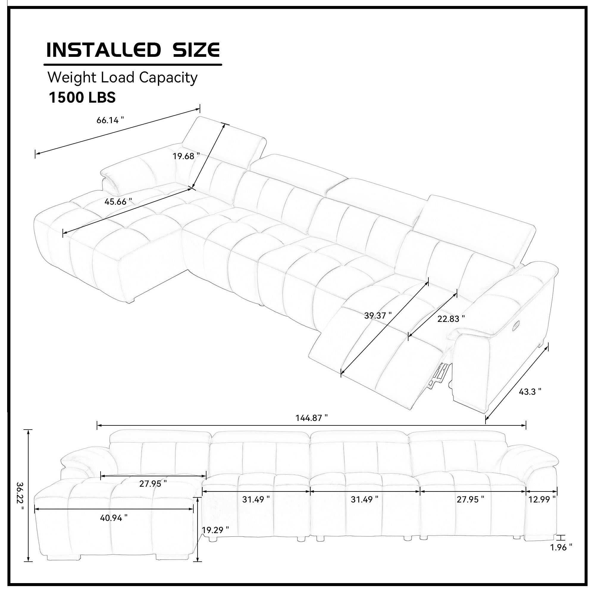Weilianda Axis Series Wall-Hugger Recliner Sofa with Chaise For Living Room,Apartment | Electric Control L Shaped Couch Genuine Leather Lounge Seat