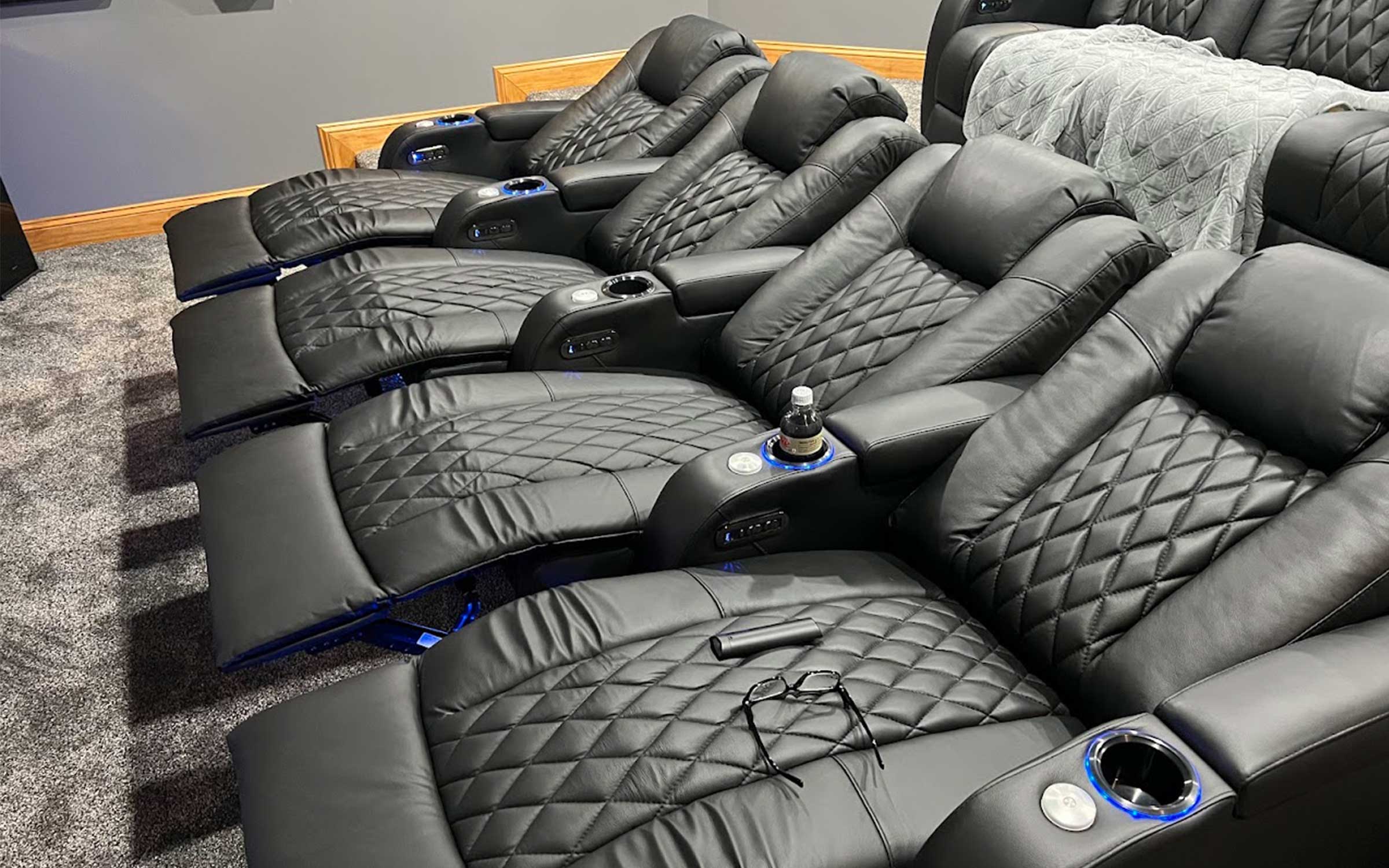 A true movie experience can't be complete without a beverage! Our movie seats come with illuminated cup holders to add convenience and sophistication to your home theater.