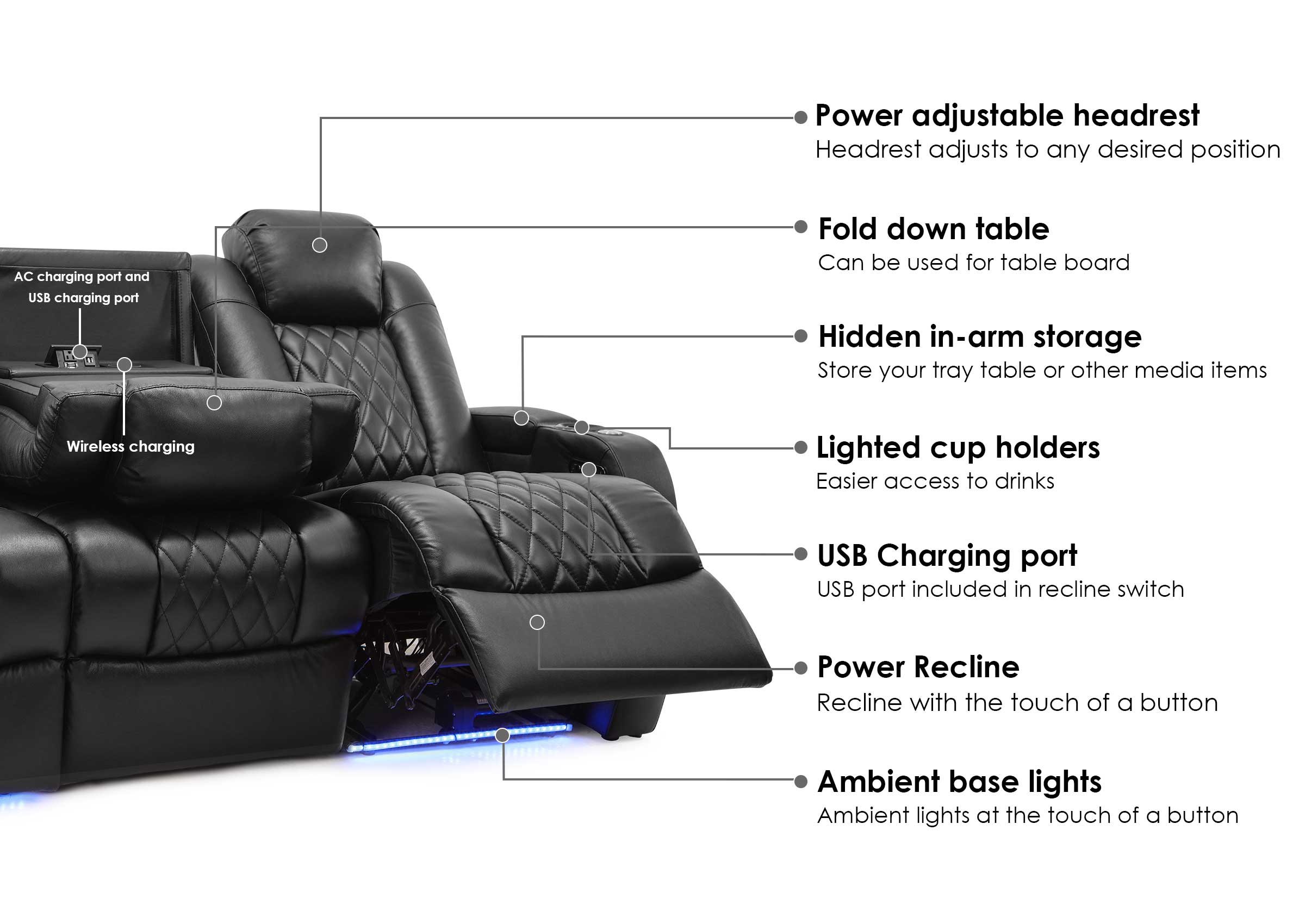 Each seat features built-in armrest storage—perfect for keeping trays, remotes, or even gamepads within reach.