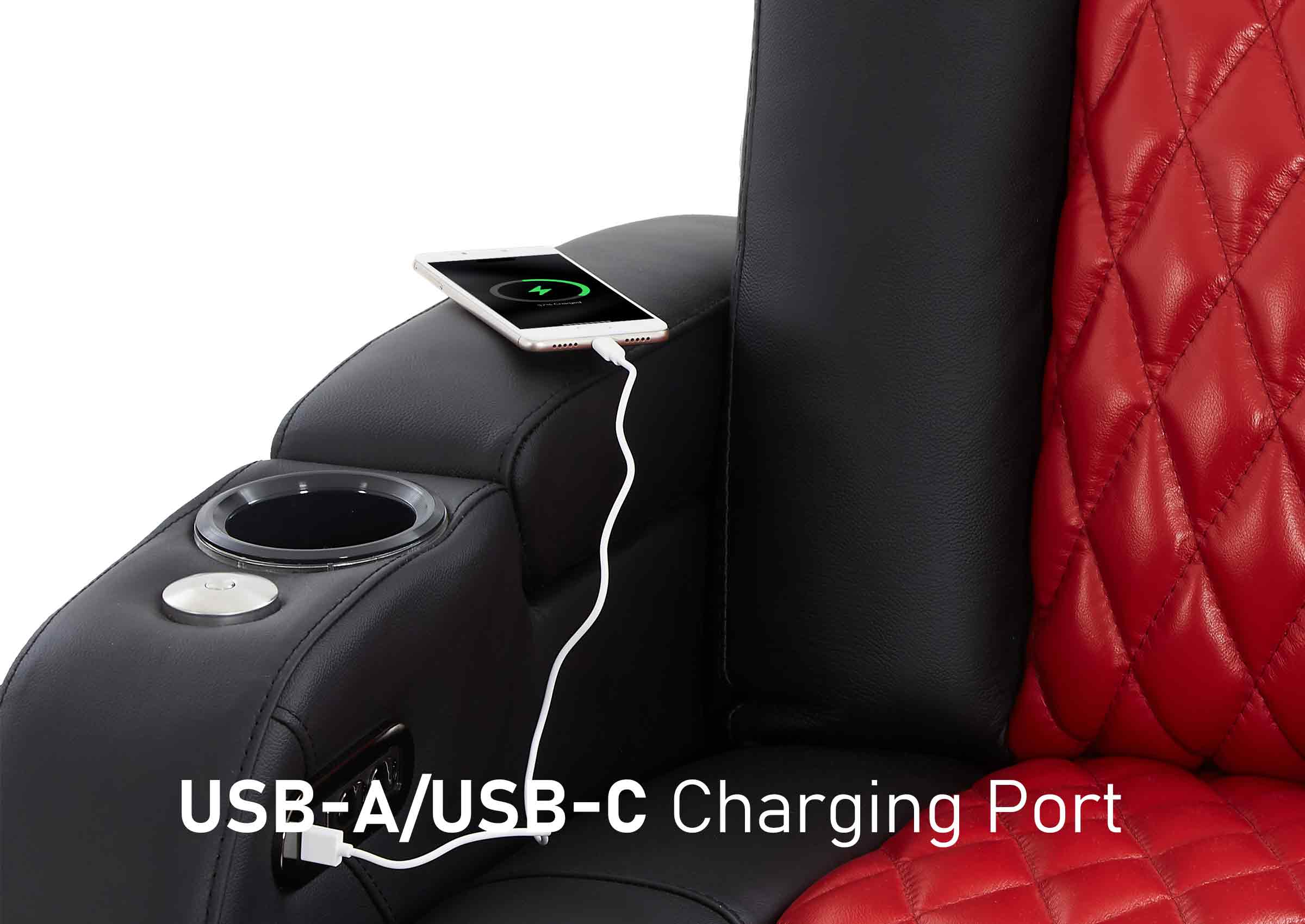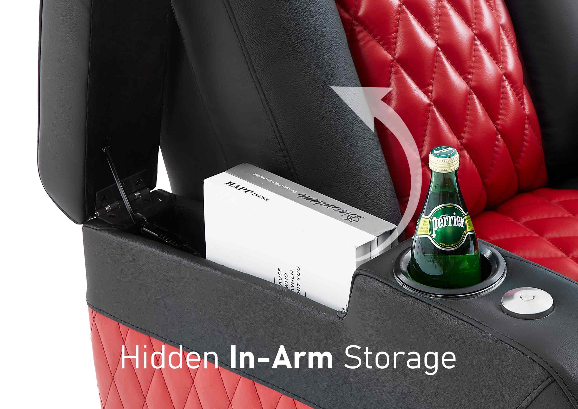 Take your movie-going experience to the next level with our amazing theater seating. We've specially designed this Luxury Series sofa with built-in storage, cup holders, tray table, ambient lighting and more.